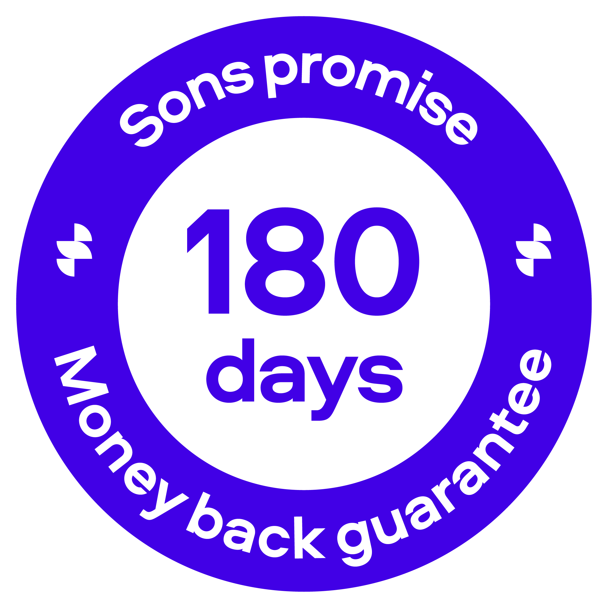 So... we’ve created The Sons Promise - a results-backed guarantee for new customers who follow their prescribed treatment for six months. It’s simple: If you’ve stuck to the plan and still haven’t seen improvement, we’ll give you your money back. No drama, just bringing back the good hair days.